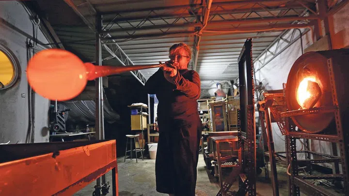 Glass-blowing is a fascinating art, as veteran Australian glass artist Barbara Jane Cowie can attest to. At her studio Art Glass Solutions, she puts molten glass on one end of a blowpipe and blows through it to create a bubble, manipulating the glass into a languid shape that could end up as a vase or a beautiful sculpture.