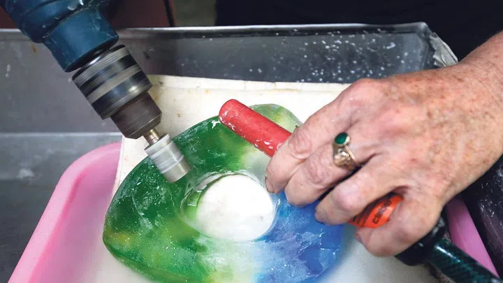 Grinding the glass to smoothen its surface. PHOTO: BY KEVIN LIM