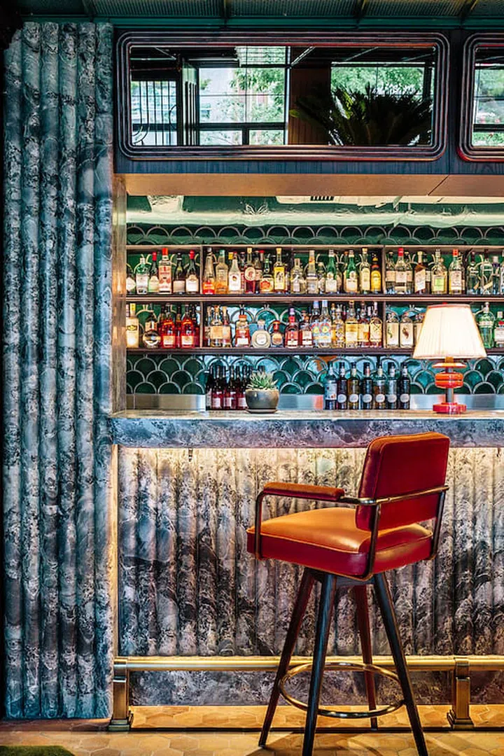 Housed in a two-storey heritage property in the gardens of the former Police Married Quarters in Aberdeen Street, it has two main rooms: The Parlour with a long Brazilian marble bar, original Thonet chairs and rattan furniture, and The Drawing Room, a private space with tropical paradise-themed wallcovering and a sunny yellow palette.