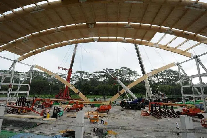 Instead of the usual concrete or steel structure commonly seen in Singapore's buildings, Nanyang Technological University's new sports hall was built using mass engineered timber.