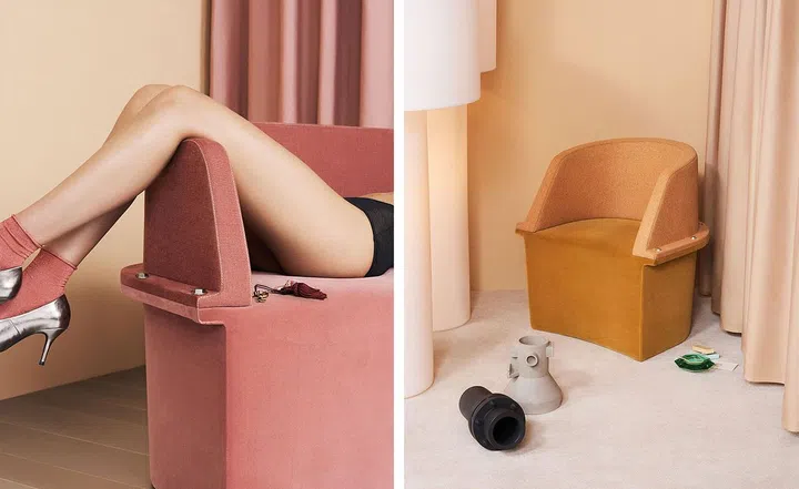 The various pieces of furniture showcase bold colours and forms, with a design philosophy that centrals around functionality and practicality.