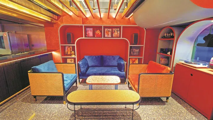 Designed by interior design firm Avalon Collective and architecture firm Asolidplan, the vibe is vibrant and carefree as you step up to a reception-cum-bar – it almost puts you in a disco mood with its vivid wall art and multicolour strobe lights effect.