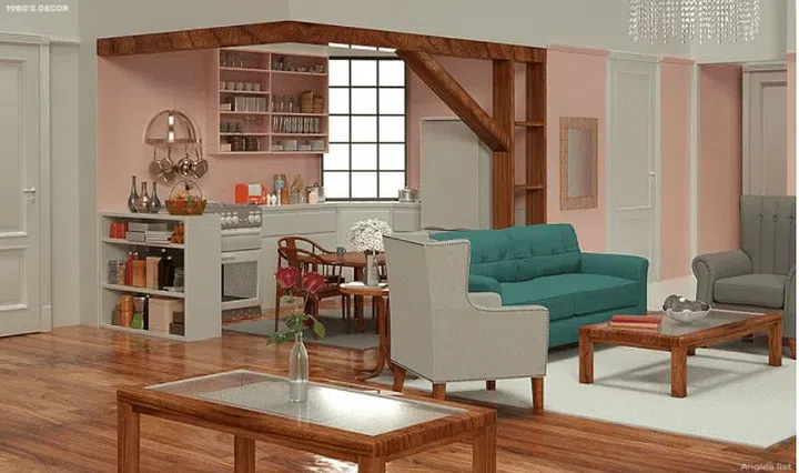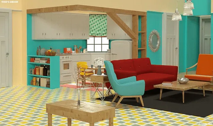 The highlight of a 1950s space would have to be the mid-century modern living room furniture, though we are sure a bold turquoise palette would have brightened up Monica’s apartment!