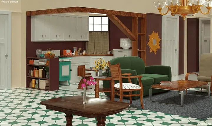 It's Friends' 25th anniversary! We are all familiar with Monica's apartment, from its purple paint to its comfy couch. But what would her apartment look like in the 1970s, or even 1920s? Take a look.