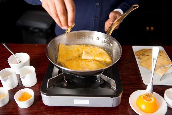 Brunch isn't complete without sweet treats, and Mr & Mrs Maxwell's does these well! Ricotta Hotcakes ($14), Crepes Suzette ($16, pictured) — made fresh at a live station — and Elvis' French Toast ($14) — a sweet version of the King of Rock and Roll's favourite sandwich — are just some of the tantalising desserts available.