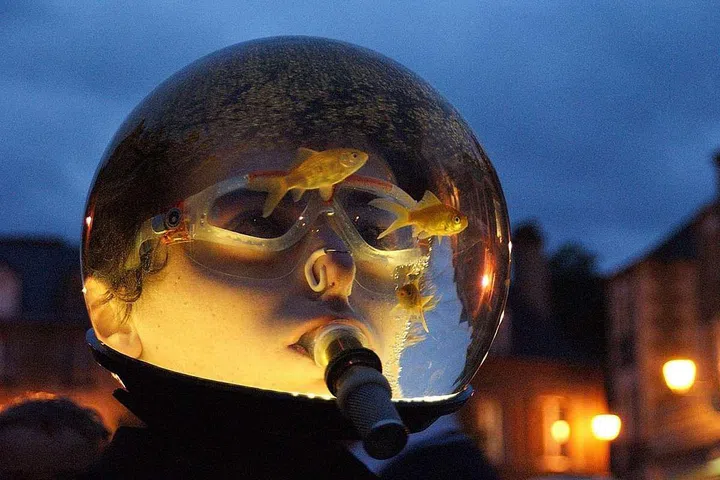 Two Aquamen from France will roam festival grounds with fishbowls on their heads. Photo: Machtiern Company