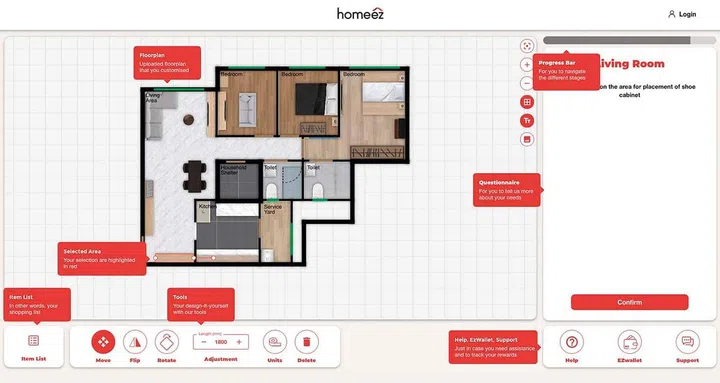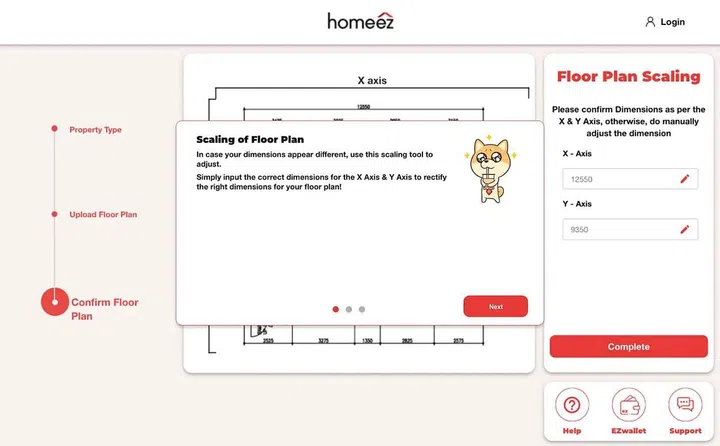 Yes, at the moment it’s only available in Singapore. We have trained our Artificial Inteligence model to read floorplans of homes unique to Singapore, like Housing Development Board (HDB) flats. We do plan to expand to other cities like Hong Kong, Shanghai, and Tokyo in the future.