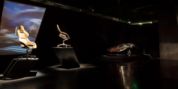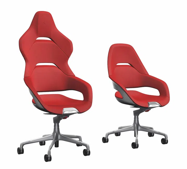 by the Ferrari Design team with furniture makers Poltrona Frau, the Cockpit chair is an office chair that captures the excitement, speed and dynamism of the driver’s seat and passion for racing. Made from the same materials used in Ferrari cars, with an external shell moulded from carbon or alutex, the chair comes in two versions: the President – with a high backrest for generous support, and