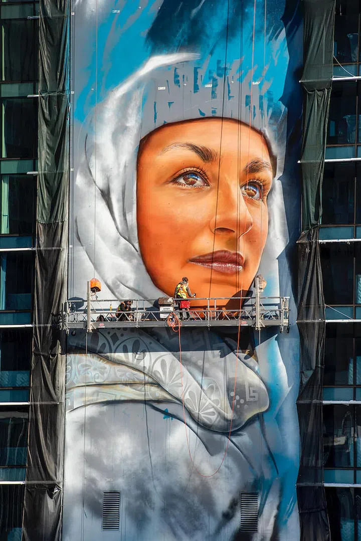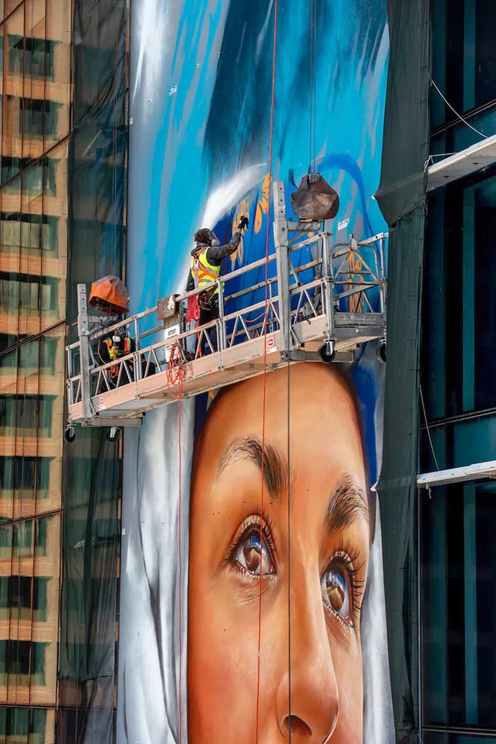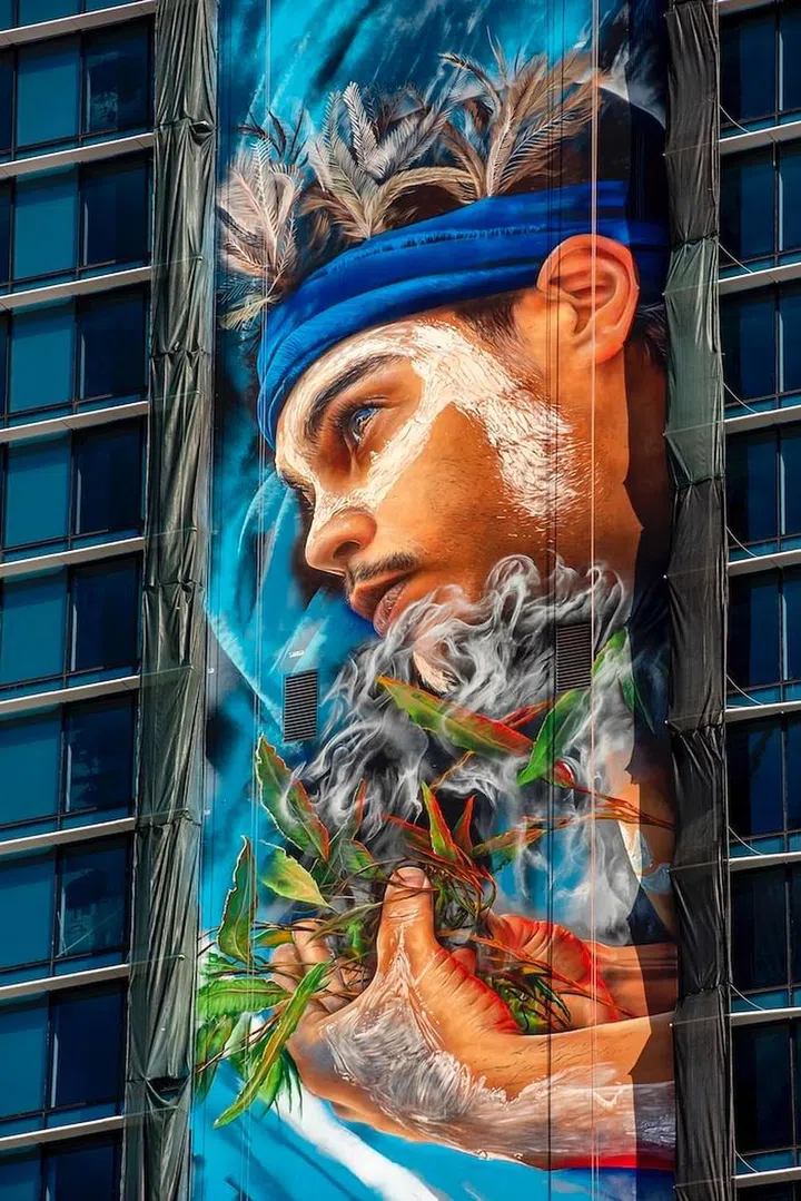 This colourful mega mural features three large-scale portraits by renowned Australian wall street artist Matt Adnate, and it is the tallest mural in the Southern Hemisphere.