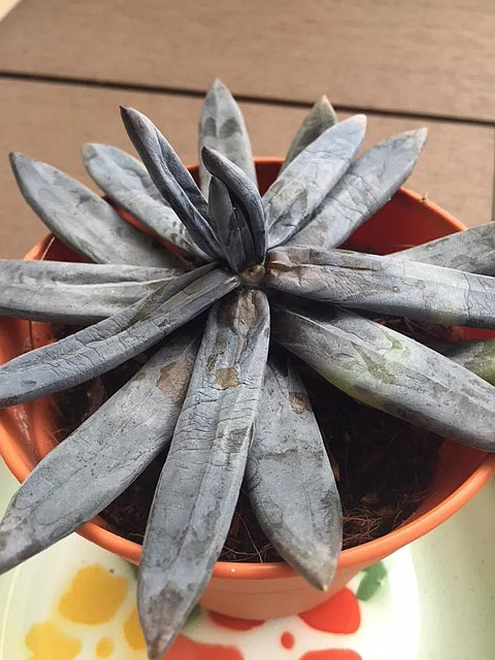 Q: When I bought these succulents, I was advised to sprinkle them with water once a week. When the weather became hotter, I was supposed to sprinkle water on them twice a week. However, the bigger succulent now looks like it is stressed (below) and has released some liquid from its leaves. What happened? How should I care for succulents? - Brenda Lye