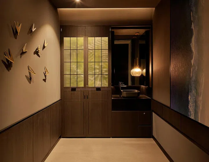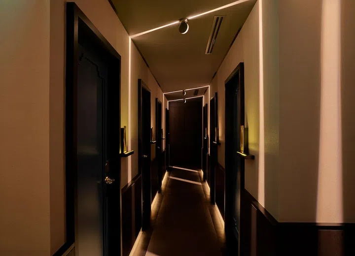The clever selection of artistic lighting designs helps customers feel safely cocooned in the space.