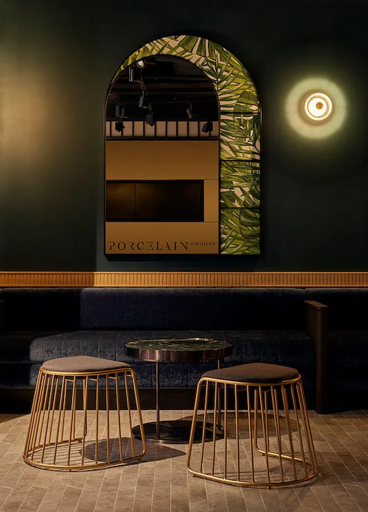In a clever strategy to segregate the spaces, transitioning areas located between the cafe and private rooms serve as sound barriers and help lead customers into the intimate and luxurious treatment rooms. Lighting options, including pendant lamps from Italian lighting houses Viabizzuno and Iguzzini that cast concentric ripple-patterned and frame-like shadows respectively, add to the overall visual effect while accentuating the cosy recesses in Porcelain Origins.