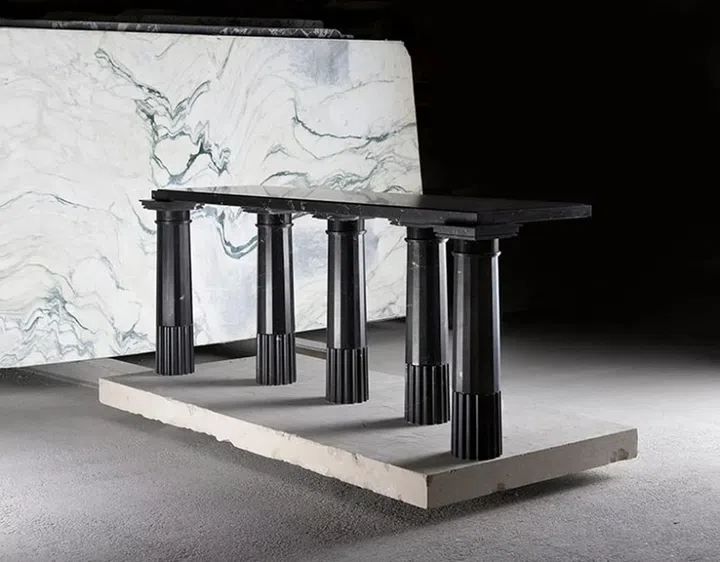 The limited-edition furniture collection, comprising tables, lamps, fountains, mirrors, consoles, and gueridons, comes in just 8 pieces in each shade of marble, as well as four artist proofs.
