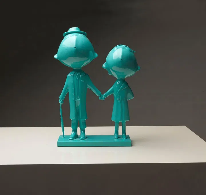 They don’t actually represent certain people. When I was studying in Singapore, I created an art piece about childhood memories. It was based on dream-like ideas, like flying or sitting on clouds that look like cotton candy. The child-like characters were created then, and I just continued using them. Perhaps they seem like old people because they are dressed in old-fashioned clothes, but they are actually not necessarily old people. Generally, when I’m drawing, I don’t envision fixed characters. They do have similar facial features, though.