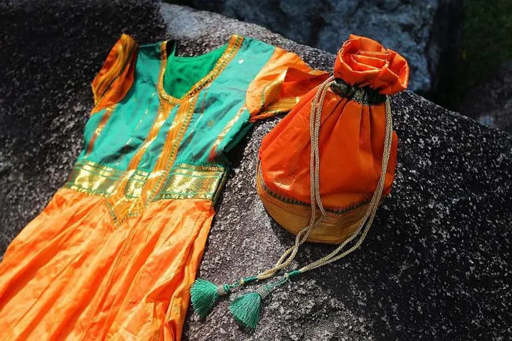 For example, a handbag she made retains the neckline of a traditional Indian tunic and cushion covers bear the trimmings of old saris.