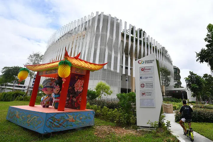 About a third of the floor area of Our Tampines Hub, which opened last year, Heartbeat@Bedok houses the ActiveSG East Bedok Sports Centre, Bedok Public Library, Kampong Chai Chee Community Club, Bedok Polyclinic and a senior care centre.