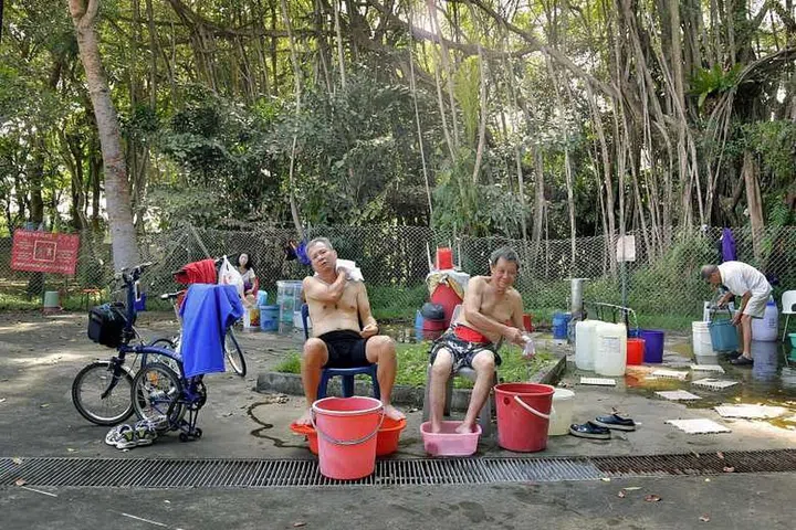 "It would be nice if we had some shelter to protect us from the sun and rain," said Mr Gui, who visits it two to three times a week. "It can also get very messy now - sometimes people wash their clothes here and hang them up to dry."