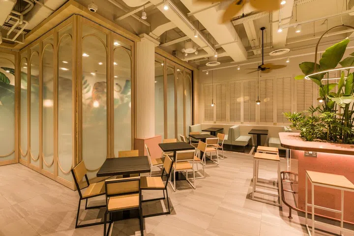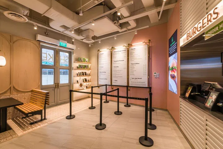 A nod to its culture-rich Chinatown neighbourhood, the second Shake Shack store in Singapore (the first is at Jewel Changi Airport) takes on a nostalgic charm, with references to Peranakan and colonial heritage. The 450 sq m space is clad in pastel pink and mint hues with touches of rose gold (in place of its distinct use of stainless steel) that is in line with the Peranakan-inspired decor.