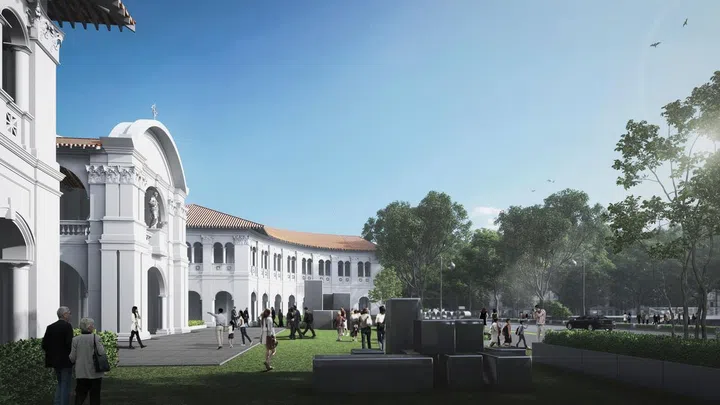 The original entrance of the museum and former driveway along Bras Basah Road will be converted into a lawn that includes art works and accessible only to pedestrians.