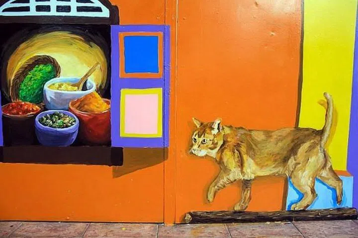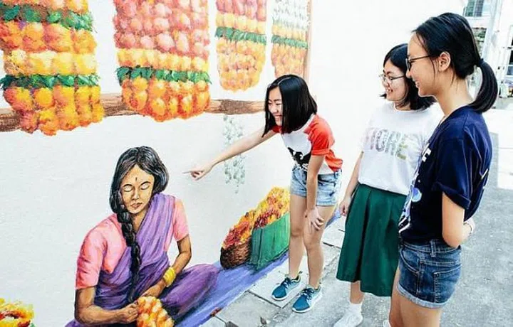 It is easy to miss the littlest artistic details along the bustling Race Course Road. But walk a little slowly and you will spot a mural painted along the narrow alley between shophouse No. 50 and 48.