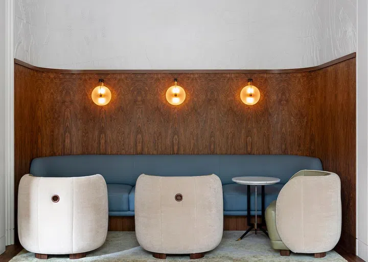 The brainchild of Irish interior architect Bryan O’Sullivan, key features include a half-moon marble bar, a hideaway corner called The Snug, and a terrace. Its glass doors open out onto a space with four seats overlooking nearby St Paul’s Knightsbridge church.