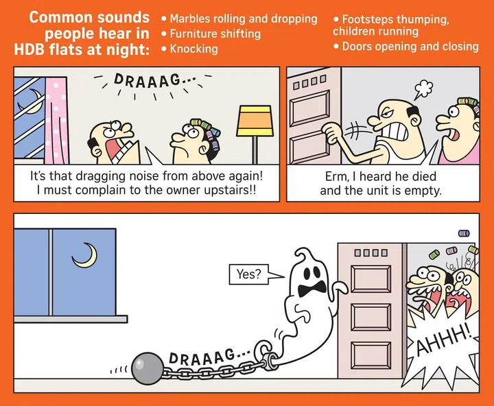 Other residents in HDB flats have also heard unexplained sounds, such as knocking on doors, thumping and footsteps pounding in the middle of the night, when no one else should be awake.