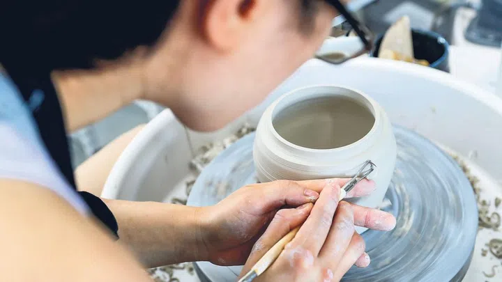 Classes are kept to a maximum of eight, and basic lessons start with understanding the nature of clay, and finding their way around a pottery wheel. Students will learn how to handle and shape the clay, trim and glaze. It takes nearly two weeks to finish making an item, as the clay needs time to dry and is fired in the kiln twice.
