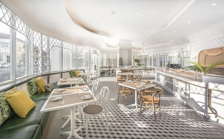 On the ground floor is the hotel’s restaurant, The Glasshouse, which was inspired by the design of English garden conservatories.