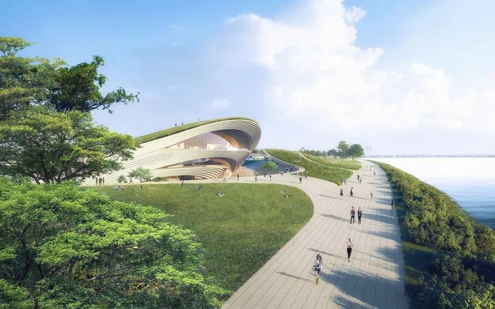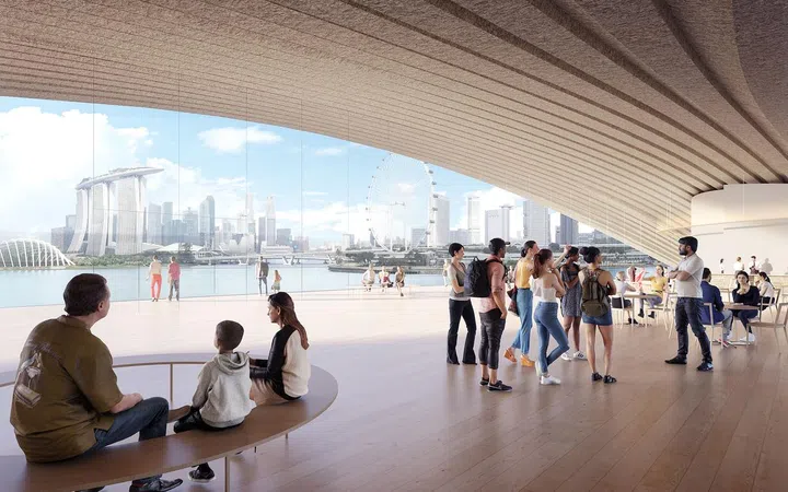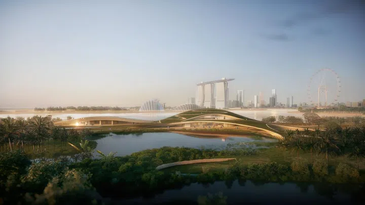 The design by Kengo Kuma & Associates and K2LD Architects was unanimously selected as the winner. Their design, an organic dome-like structure that rises from the landscape in undulating layers, blends in beautifully with its natural surroundings and the Marina Bay skyline.