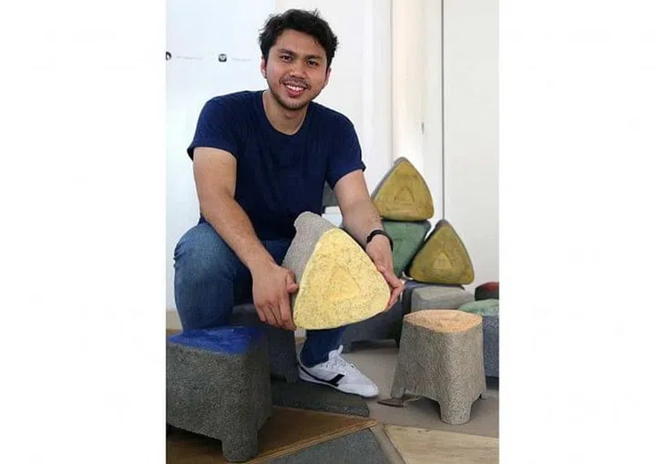 After his final-year project on stool design in university, Mr Mohamed Hafeez Mohamed Shah, 26, had an idea to produce a solid material from old newspapers and biodegradeable plastic. The new material, called Nupaper, was inspired by papier-mache and has since been used to produce stools for children.