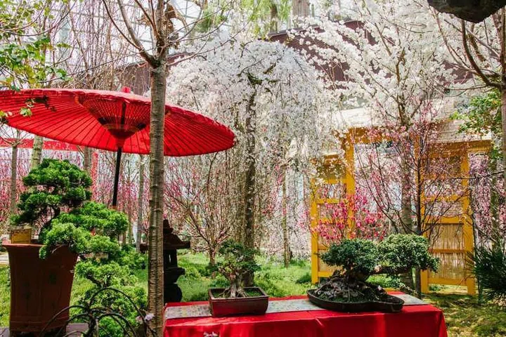 The display is styled after a traditional Japanese garden, featuring Japanese elements such as a traditional torii gate and Japanese screens.