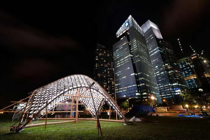 What: Made of bamboo, this installation by architecture and design firm Snohetta not only acts as a shelter during the day, but also uses solar-powered lamps that light up intensively at night.