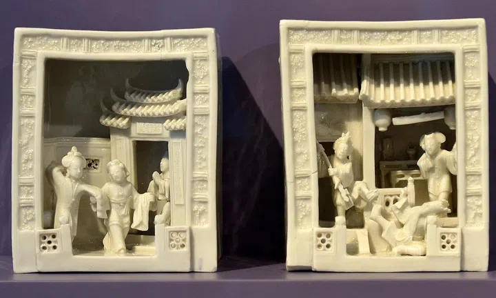 The crown jewel of the show, however, is the collection of Dehua porcelain - white porcelain from Dehua county in Fujian province. Dehua porcelain is well-known around the world for its distinctive white glaze and fine clay - allowing for delicate workmanship and highly expressive forms. Besides Dehua ware, the exhibition, which flows in a largely chronological order, includes sections on clay objects for burial and porcelain made for the imperial court.