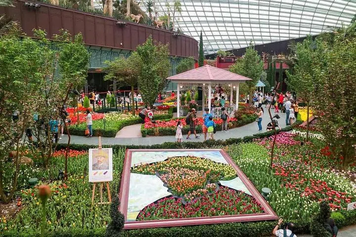 For its fifth edition of Tulipmania, the Flower Dome at Gardens by the Bay has turned into a floral art gallery. It features two displays inspired by the works of Dutch painter Vincent Van Gogh. The painting, The Starry Night, and a Van Gogh self-portrait have been recreated using tulips and hyacinths.
