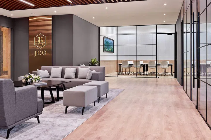 Located in the Gotham-esque building of Parkview Square, the office interiors of JCO Consulting takes design inspiration from its ornate Art Deco premises but gives it a modern twist.