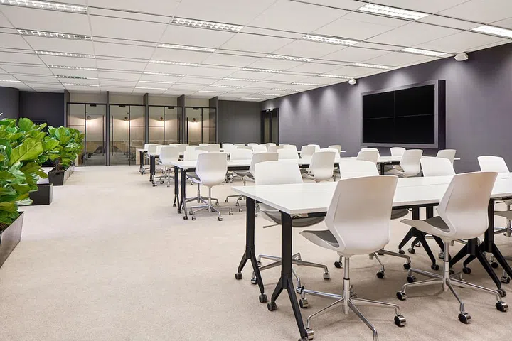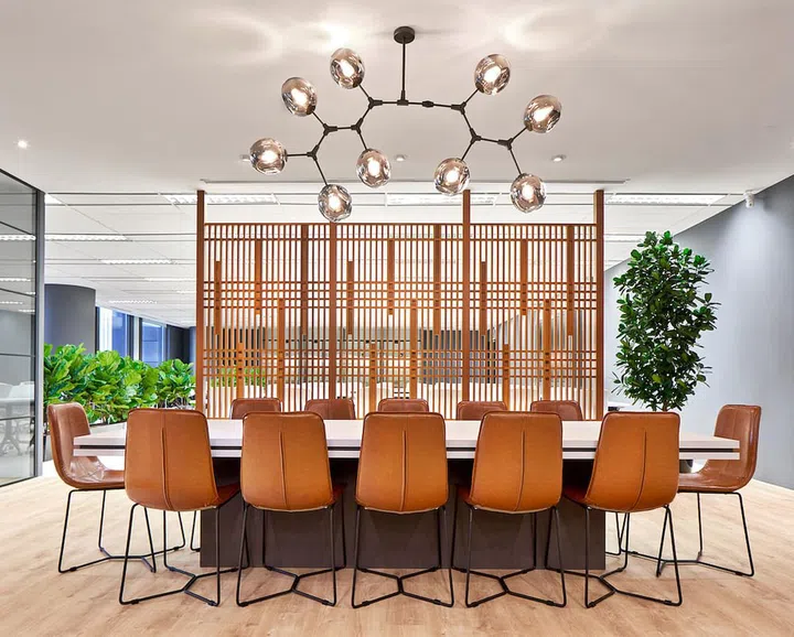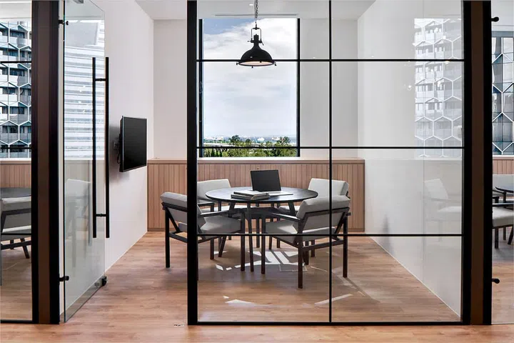 Discussion rooms enjoy ample natural light streaming in from windows, which also provide views to the adjacent DUO office tower and residences.