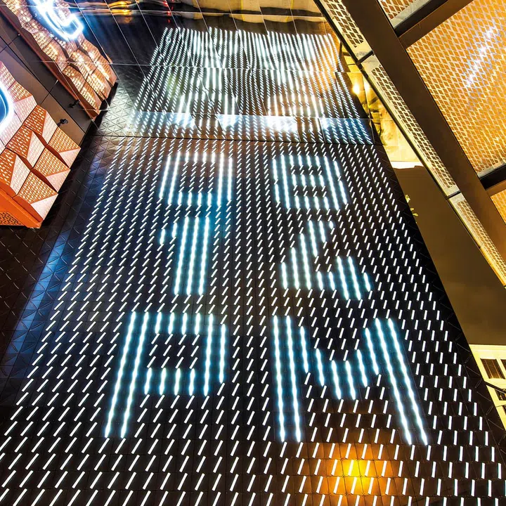 If that isn’t enough to draw the eyeballs (and smartphone cameras) of patrons at Funan, the wall also has thermographic and infrared sensors hidden within, allowing it to respond to movement within the vicinity.