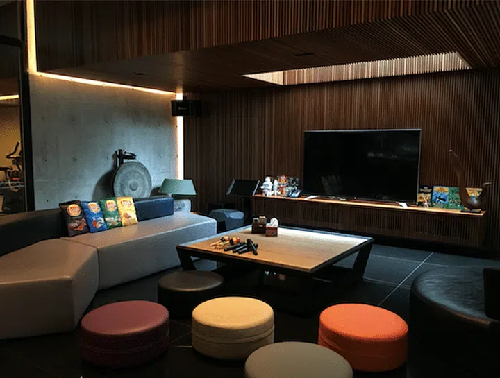 This cheerfully designed centre is a recreational facility, with a communal kitchen, has an open-plan design.