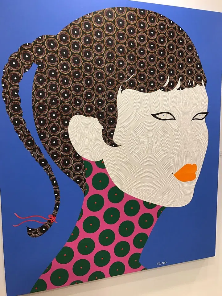 Artist Chamnan Chongpaiboon uses dots to create interesting patterns across the faces of his portraits. It's like a collection of many small mandalas. The paintings themselves come in huge canvases, perfect for filling those bigger walls.