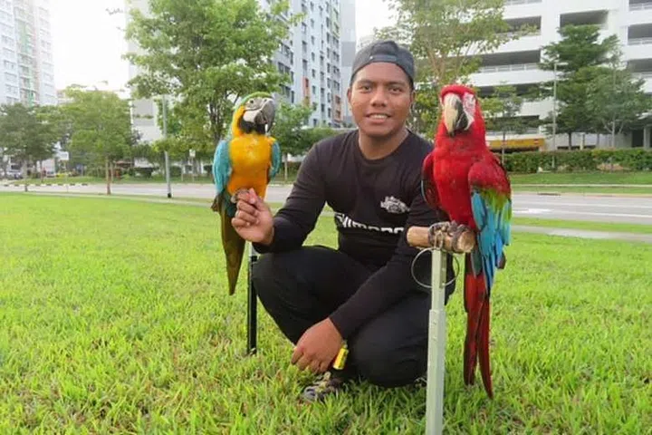 (Yishun resident and parrot enthusiast Muhamad Riduwan says that "things like fighting, murder and animal abuse happen everywhere". ST PHOTO: FABIAN KOH)