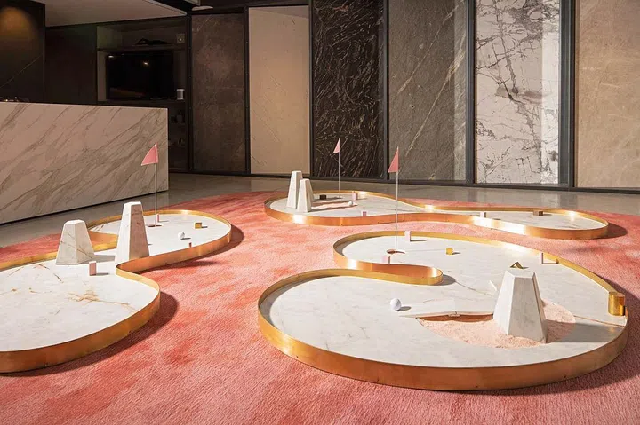 A miniature golf course created in collaboration with CDKStone in Australia using sintered stone from Neolith.