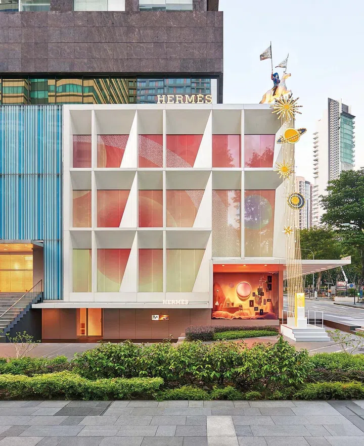 The window display by Olivia at Hermes Singapore Liat Towers during the 2019 Hermes petit h exhibition