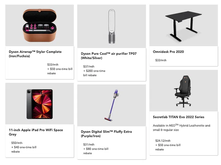 Get gadgets and furniture at wallet-friendly prices and charge it all to your Singtel bill.