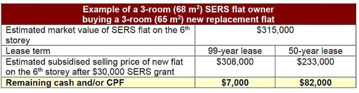 An example of a three -room SERS flat owner buying a replacement flat with a lower lease period.