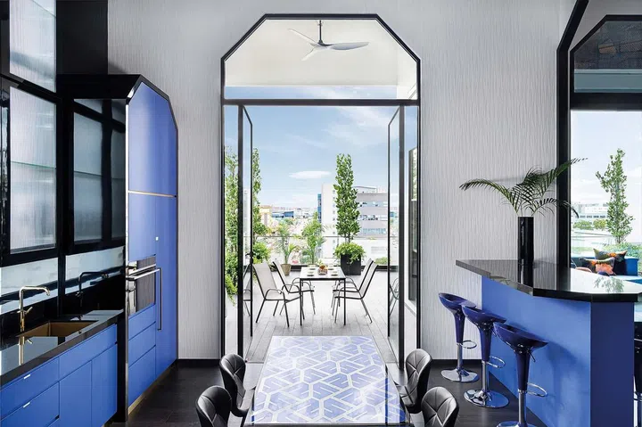 Within the showroom, you will be able to fully experience the brilliance of the spatial design, coupled with the futuristic yet intimate theme, centered around geometrical and angular forms, derived from the Sapphire Windows crystalline-shaped logo and complemented with the use of iconic sapphire blue brand colour.