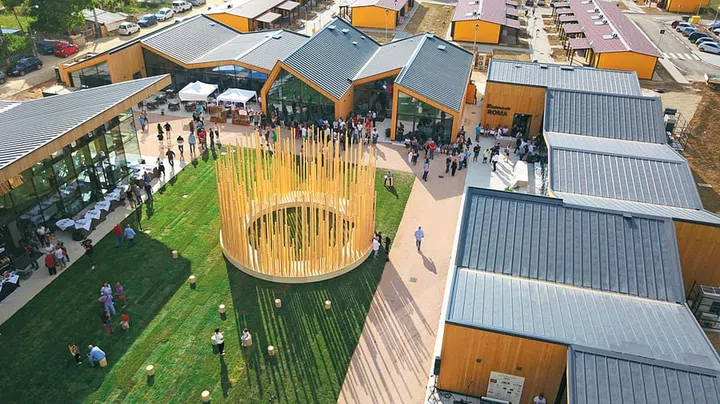 Amatrice Piazza del Gusto. Following the devastating Amatrice earthquake in 2016, Stefano created a symbol of a renaissance: a 2,500 sq m temporary multipurpose meeting place with a school canteen and eight restaurants, in which all the social and catering activities interrupted by the seism could find a dedicated new home.