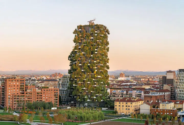 On 2014, he erected his first Bosco Verticale (Vertical Forest) of two residential skyscrapers, rising 112m and 80m respectively, in Milan. The prototype of sustainable buildings with facades carpeted with the leaves of 800 trees, 5,000 shrubs and 15,000 plants of 100 different species, it focuses on the relationship between humans and other living species.It also forms a microclimate that aids in the absorption of CO2 and fine particles from automobile traffic, produces oxygen, improves air quality, lowers temperatures, shields from noise pollution, minimises energy consumption and promotes biodiversity.