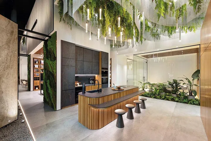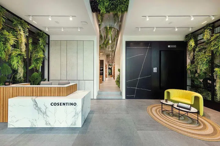 Designed by the Cosentino City design team in Spain, the garden-inspired showroom consists of multiple areas featuring the Silestone, Dekton and Sensa brands under Cosentino.