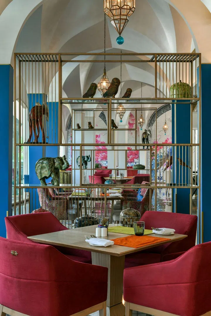 Devi Ratn takes its name from the Nav Ratn – the nine gems symbolising cosmic energy. This pushed Designers Group to draw inspiration from Jaipur’s world-famous traditional handmade jewellery motifs for the hotel’s interior, creating a spatial experience that is akin to walking into a jewellery box.