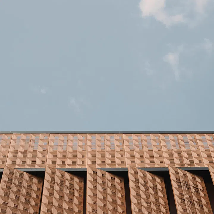 According to the time of day, its mechanically controlled, pivoting panels regulate the building’s apertures to provide shade and filter out the sun.